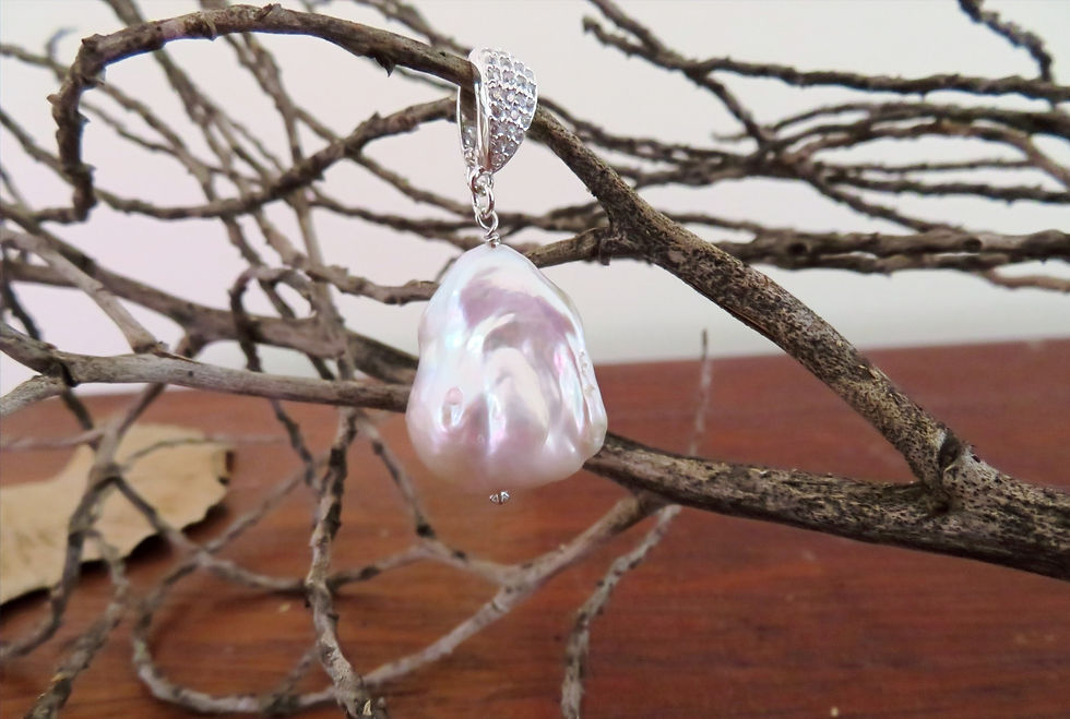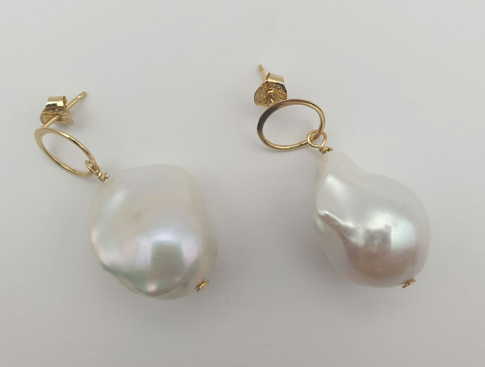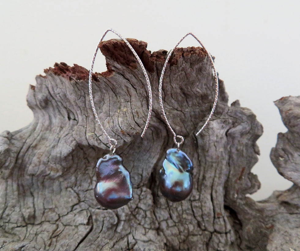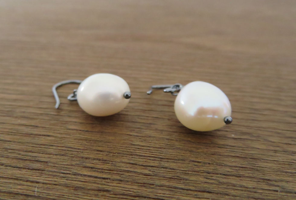 White Flat Baroque Pearl and oxidised sterling silverEarrings